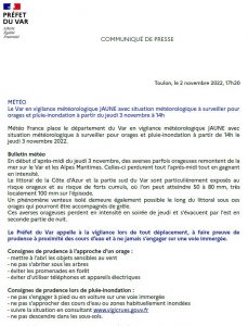 Alerte de la préfecture du Var pour le jeudi 04-11-2022